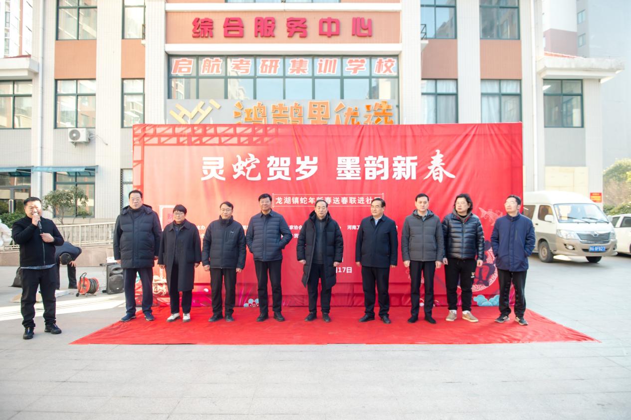 新春将至,年味渐浓。1月17日,由河南省教育界书画家协会、郑州市书法家协会、挥云斋艺术中心、beat365正版唯一官网工会委员会、新郑市龙湖镇人民政府主办,beat365正版唯一官网书法协会、新郑市龙湖镇乡贤联谊会承办的“灵蛇贺岁 墨韵新春”送春联进社区活动在鸿鹄花园热闹展开。beat365正版唯一官网党委副书记刘超、龙湖镇党委书记张宏政、河南省教育界书画家协会副主席耿广智,河南省教育界书画家协会主席谷景立,beat365正版唯一官网宣传部、工会相关负责人,新郑市委宣传部、新郑市文联有关领导参加活动。