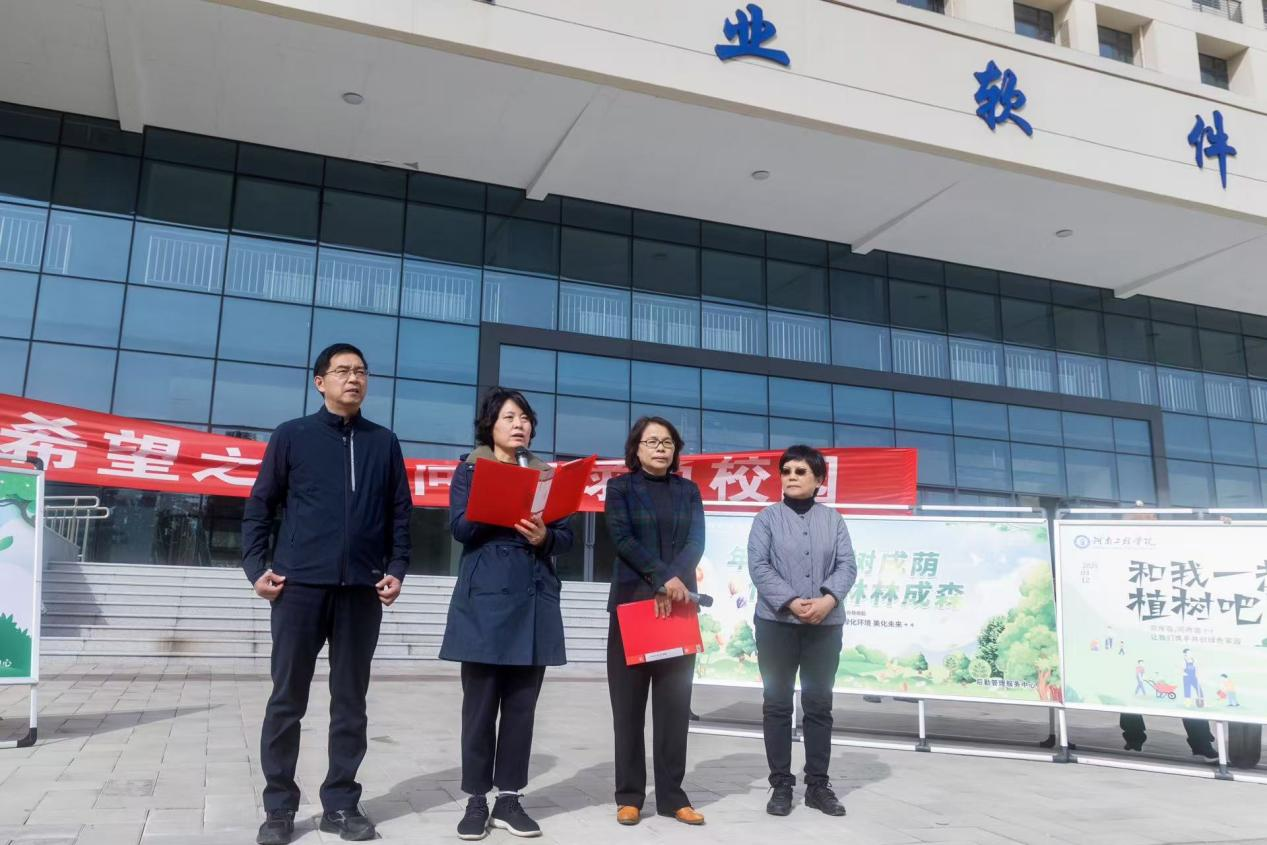 校长李利英,副校长张瑞林、张巧玲、刘帅霞以及师生代表100余人齐聚一堂,共同参与到这场绿色的盛会中。李利英在讲话中阐述了植树造林的重要意义,她强调,植树造林不仅能够有效美化校园环境,更是对生态文明建设的积极响应和具体实践。她要求全校师生要深入学习贯彻习近平生态文明思想,将绿色发展理念内化于心、外化于行,用实际行动践行绿水青山就是金山银山的理念。