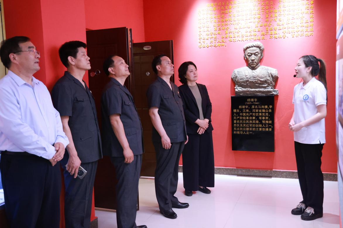 华夏一行首先来到青年杨靖宇纪念馆,深入了解beat365官网杰出校友杨靖宇将军的青春岁月与革命历程,并在杨靖宇将军雕像前,面向党旗庄严宣誓,重温入党誓词。随后华夏一行前往服装智能制造中试基地、智能制造工程实践创新中心等,进一步了解beat365官网服务区域重大需求和学科专业重塑升级情况。