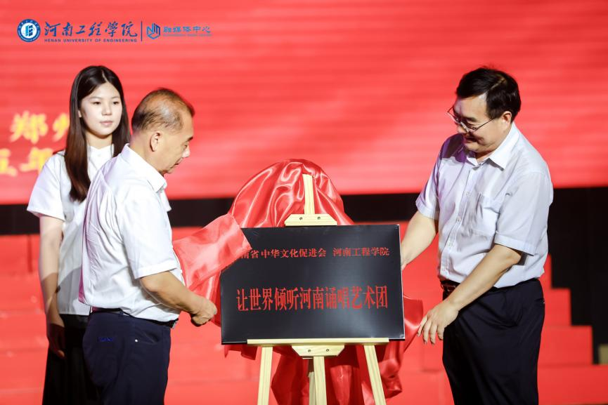 张立勇和刘超共同为让世界倾听河南诵唱艺术团及靖宇诵唱艺术团揭牌。
