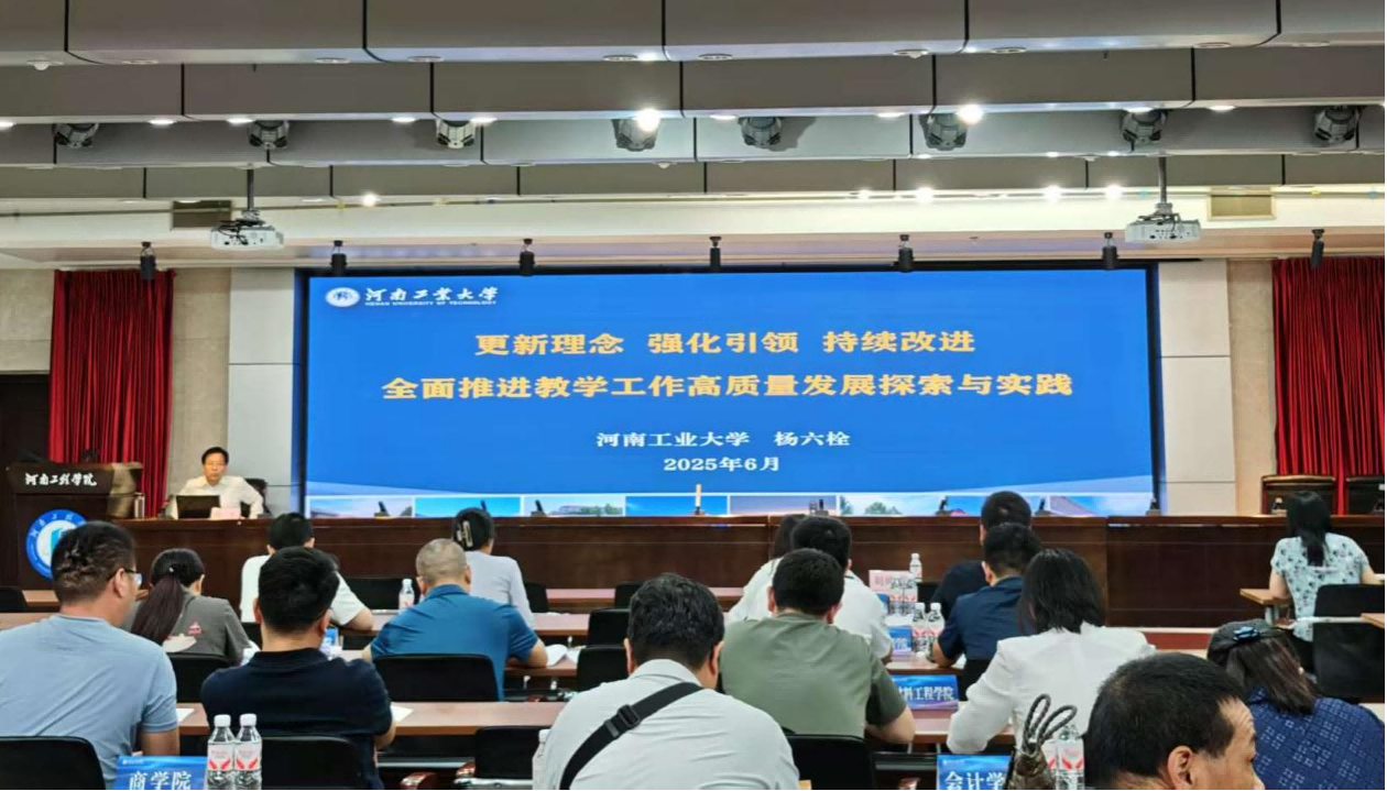杨六栓以德国哲学家雅斯贝尔斯《什么是教育》为引,解析培养高素质创业人才的宗旨、要求、方法、保障,分享河南工业大学的经验和做法。从“转变教育理念,强化学生中心产出导向”“驱动三链耦合,持续优化学科专业布局”“聚力交叉复合,积极推进专业内涵式发展”“推进多元融合,构建多主体协同育人模式”“推动课堂革命,着力课堂教学挤‘水’添‘金’”“强化AI赋能,强力推进教师数字素养提升”“坚定持续改进,积极践行‘五自’质量文化”“明确使命担当,持续坚守‘五高’工作原则”等八个方面讲解如何培养学习型、服务型、创新型的教学管理工作队伍。