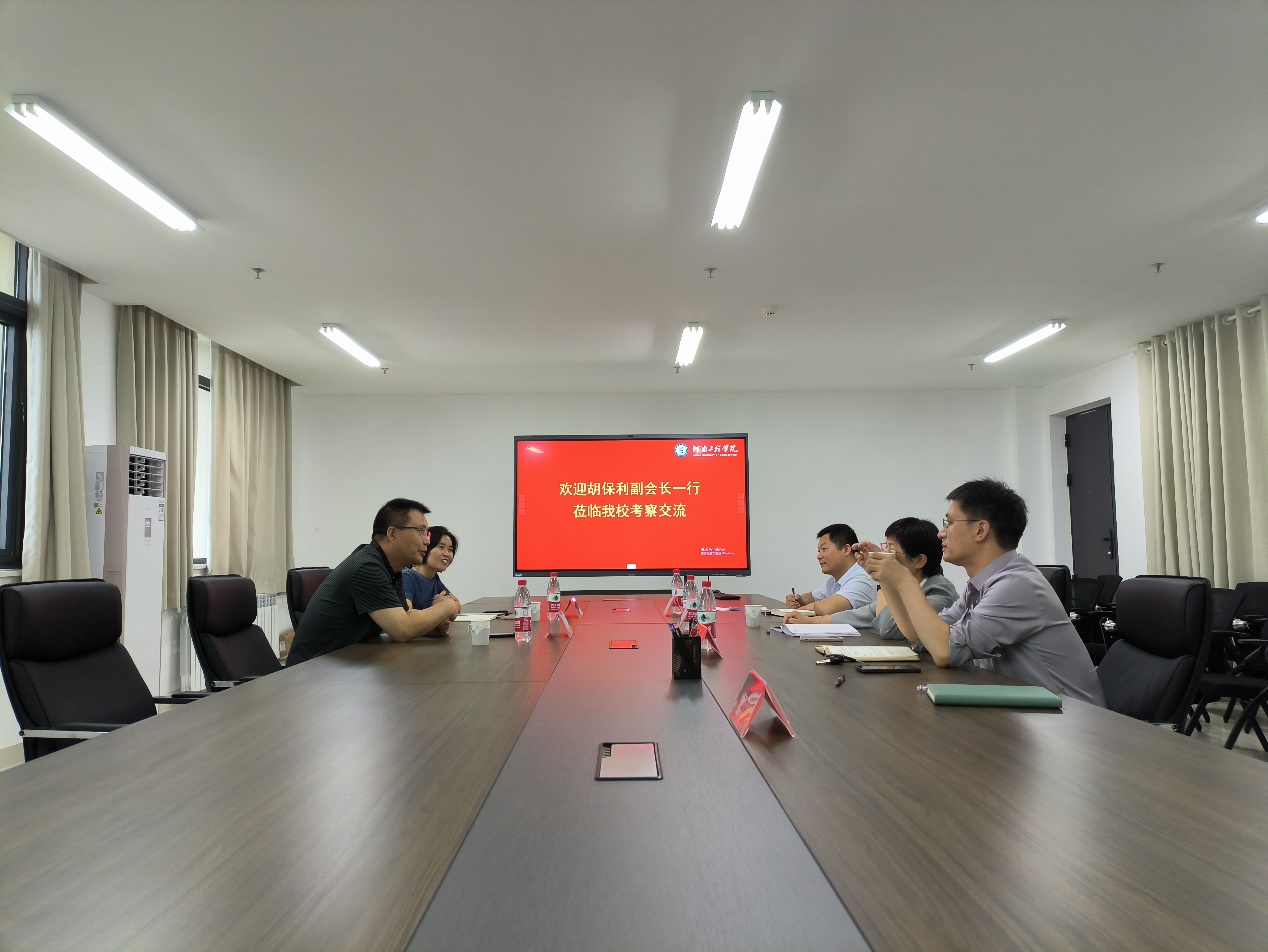 刘帅霞对胡保利一行莅校交流表示欢迎,简要介绍了学校的办学历史和发展概况,介绍了在河南省新型现代产业学院体制机制建设、专业建设、师资队伍建设、课程体系建设、产教融合型教学资源建设等方面的做法和成效,表达了与河北省高等教育学会深化合作的良好意愿。