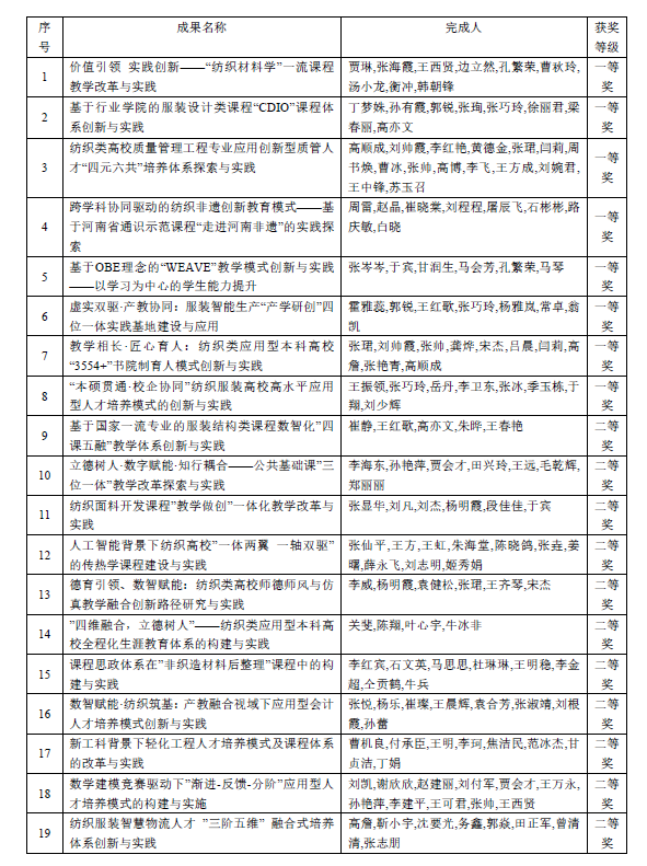 学校高度重视教育教学成果培育,开展有组织的教学研究,引导、组织教师围绕学校办学定位和办学特色开展教学研究和成果申报,强化过程指导,确保研究质量。本次“纺织之光”成果竞赛的成绩是对beat365官网广大教师长期潜心教学、倾心育人的高度认可,对学校申报河南省高等教育教学成果奖提供有力支撑,也对推动beat365官网硕士授权单位创建工作有重要意义。