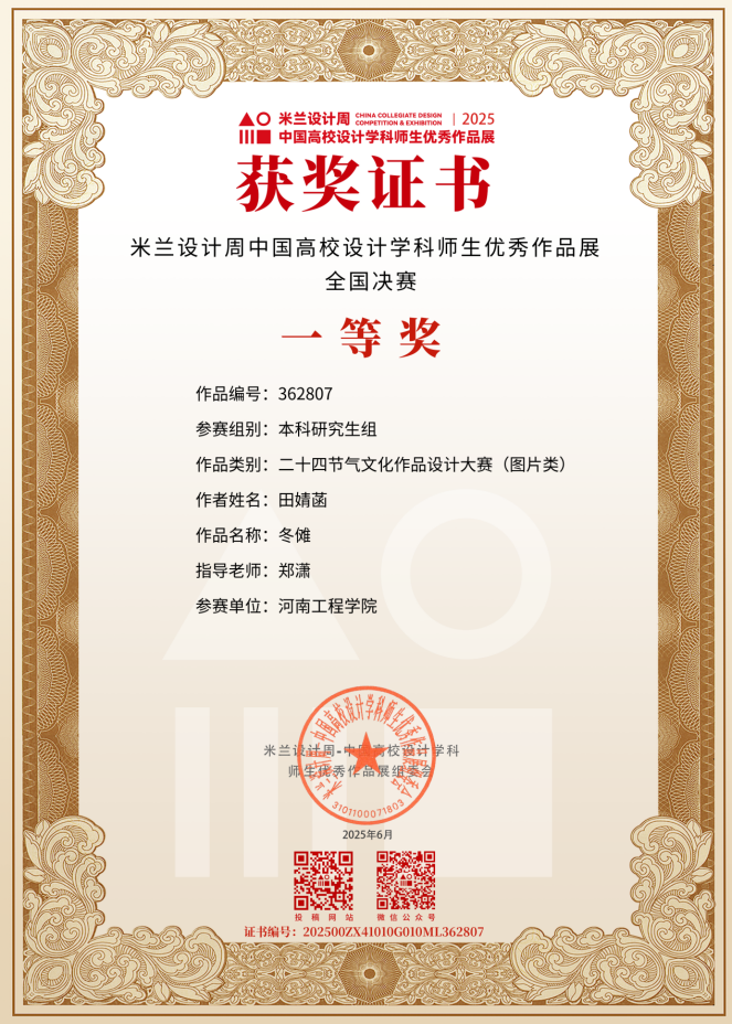 由中国教育国际交流协会、中国高等教育学会联合主办的米兰设计周2025中国高校设计学科师生优秀作品展中,服装学院师生共荣获国家级一等奖1项,国家级三等奖6项,省级一等奖8项,省级二等奖9项,省级三等奖14项,共累计获奖38项。大赛旨在真实反映新时代背景下我国设计学科教学水平的现状和教学成果,为全国艺术学科师生搭建展示专业才华和创作水平的国际化交流学习平台。