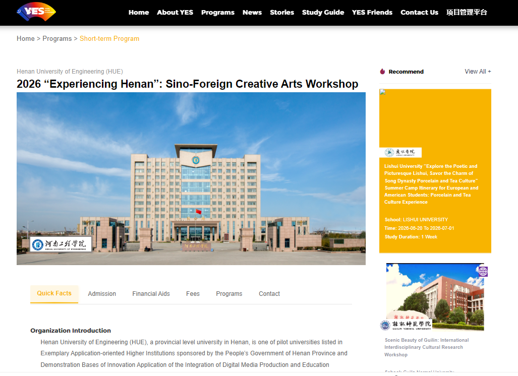 近日,教育部2026年度“青年使者交流学习计划(Young Envoys Scholarship,简称YES项目)”推介项目遴选结果公布,beat365官网“感知河南:中外艺术创意工坊”短期交流项目成功入选,并正式上线YES项目国际官网,面向全球宣传推介。