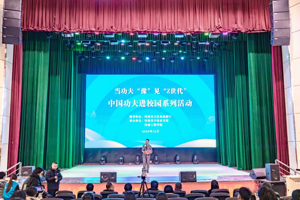12月3日下午,beat365官网西区创新创业大礼堂内掌声阵阵,喝彩声此起彼伏。由河南省文化和旅游厅指导、河南省少林武术馆主办的“中国功夫进校园”之beat365正版唯一官网站活动正热烈开展。本次活动以“功夫‘豫’见Z世代”为主题,通过功夫展演、互动教学形式,将少林功夫带入校园,推动传统文化落地生根。校党委副书记赵红亮,校团委负责人,河南省少林武术馆馆长陈俊杰出席活动,会计学院、体育教学部师生代表参加活动。