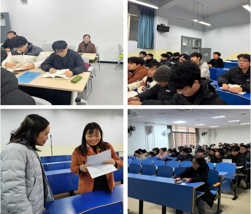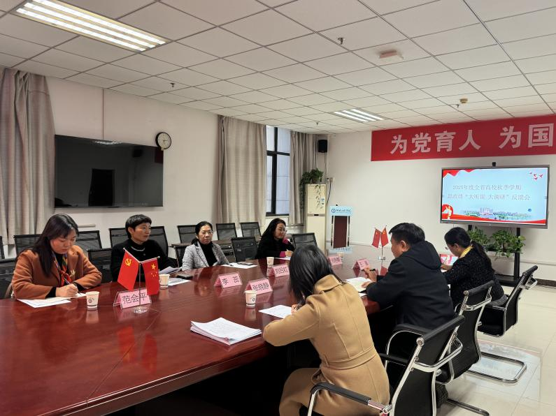 随后,专家组和马院领导班子来到综合楼702召开了反馈会,就教师的上课情况进行具体的反馈指导。专家组成员指出,任课教师理论功底扎实深厚,语言流畅、节奏把控精准,通过鲜活生动的案例分析有效激活课堂氛围,激发学生学习兴趣,在内容设计上注重学理阐释的延展性。同时,专家组成员提出,需进一步强化党的二十届四中全会精神的有机嵌入,夯实理论根基,增强师生双向交流频次,进一步提高学生抬头率,加强对青年教师的培养,深化大中小学段衔接,推动教学效能实现系统性提升。