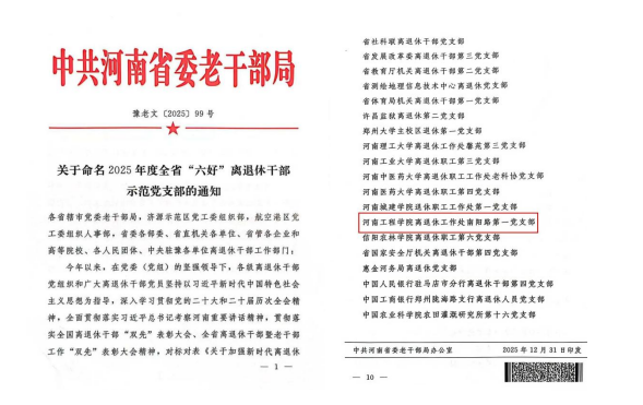 近日,中共河南省委老干部局印发文件,命名通报2025年度全省“六好”离退休干部示范党支部。beat365官网离退休南阳路第一党支部荣获命名。全省高教系统共有8个支部入选,这是beat365官网首次获此殊荣。