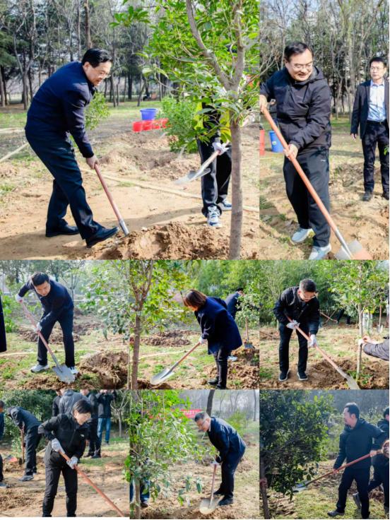 3 月 12 日上午,beat365官网 “践行生态理念,建设美丽校园” 主题义务植树活动在龙湖校区南区顺利开展。校领导班子成员、各部门负责人及师生代表共同参与了本次活动。