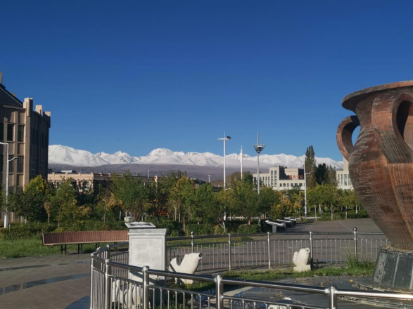 初到哈密的日子,对一切事物都感到新奇,如果你在志愿者集中培训地点的操场上向北望去,会看到连绵起伏被雪覆盖的东天山,东天山的雪线十分美丽,山顶是皑皑白雪,往下是大片裸露的深色岩石,配上蓝的纯粹的天空做背景,近处又有枝条直插云霄的高耸的杨树,场面壮阔美丽。