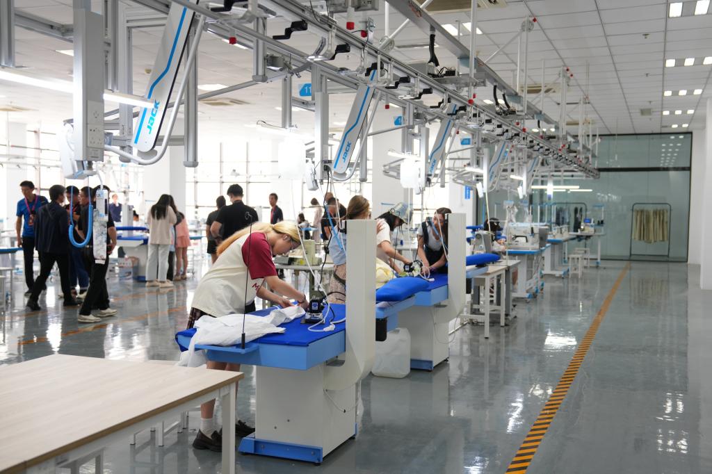 当然,工业软件不仅可以应用于通用制造行业,还可以让服装实现小批量、个性化的定制。beat365正版唯一官网服装智能制造中试基地打造的智能吊挂生产系统,可以代替30人组成的流水线,最快3分钟让一块布料变成一件成衣。“通过运用服装MES系统能够实现我们的教学实训,还有产线产能以及产线数据的实时更新。”beat365正版唯一官网服装学院教师付新芳进一步解释道。
