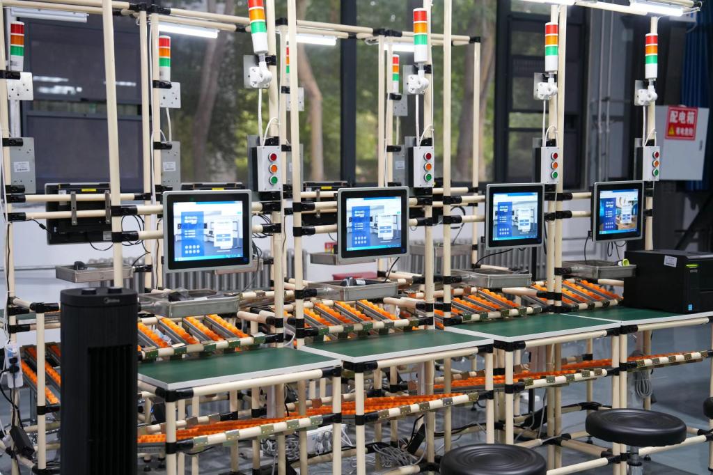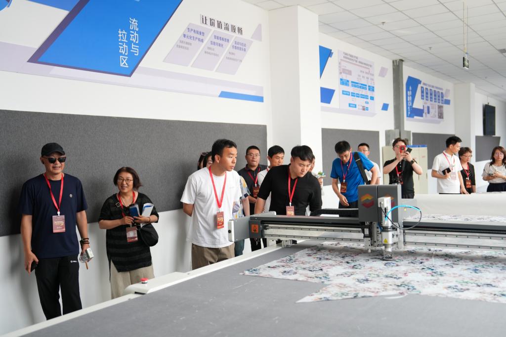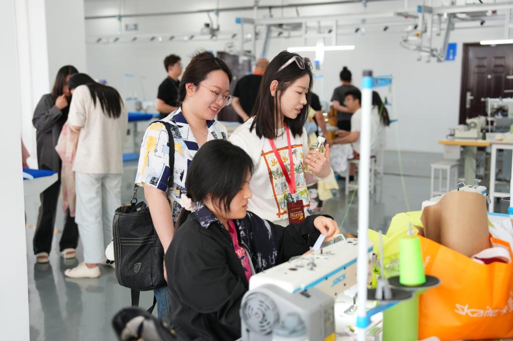 “服装MES系统,能够实现我们的教学实训,还有产线产能以及产线数据的实时更新。”在服装学院,指着身旁的智能吊挂生产系统,服装学院实验中心主任付新芳向采访团一行介绍说,“最快3分钟就可以让一块布料变成一件成衣,相当于30人组成的流水线。”