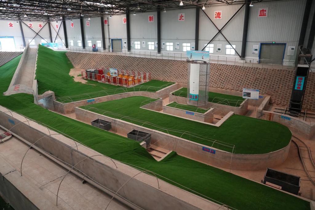 “这就是我们的采煤工作面,学生都可以在里面进行正常操作,通过两个抓手可以进行上下左右摆动割煤。”在矿井实训中心,实验室教师宫伟东介绍,“作为国内高校为数不多的大型煤矿实景教学系统,为方便教学,学校还专门设计了教学走廊,学生可以清晰地看到井下的生产布局。”