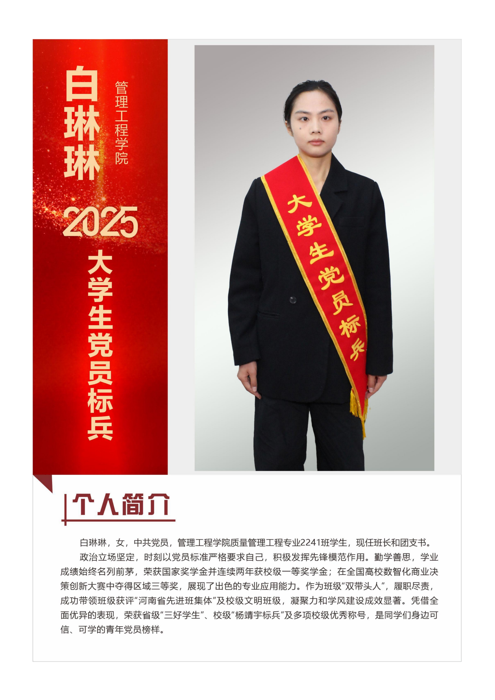 编者按:青春逢盛世,奋斗正当时。在党旗引领下,beat365官网大学生党员胸怀理想、锤炼本领,把 “党员先锋” 四个字熔铸为青春实践。以进取之心、实干之心、服务之心书写成长答卷,筑牢信仰根基。他们信念如磐,以党的创新理论武装头脑,在思想引领中争当表率;他们笃行实干,深耕学业、锐意创新,在学术科研与实践赛场屡创佳绩;他们心系师生,投身志愿服务、助力校园文明建设,用点滴行动践行初心使命。