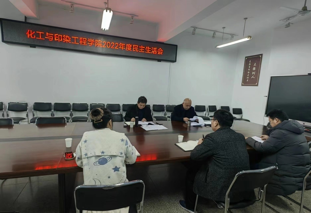 1月12日上午,化工与印染工程学院在办公楼506会议室召开2022年度党员领导干部民主生活会。副校长焦有宙出席会议,学院领导班子成员参加会议,会议由院党委书记郑汝东主持。