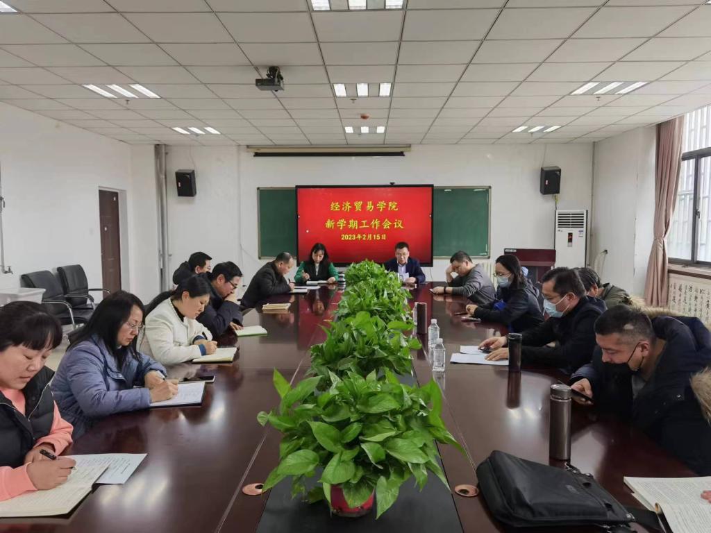 2月15日下午,经济贸易学院在9号楼学院会议室召开新学期工作会议。会议由学院党委书记赵方主持,全体教职工参加。