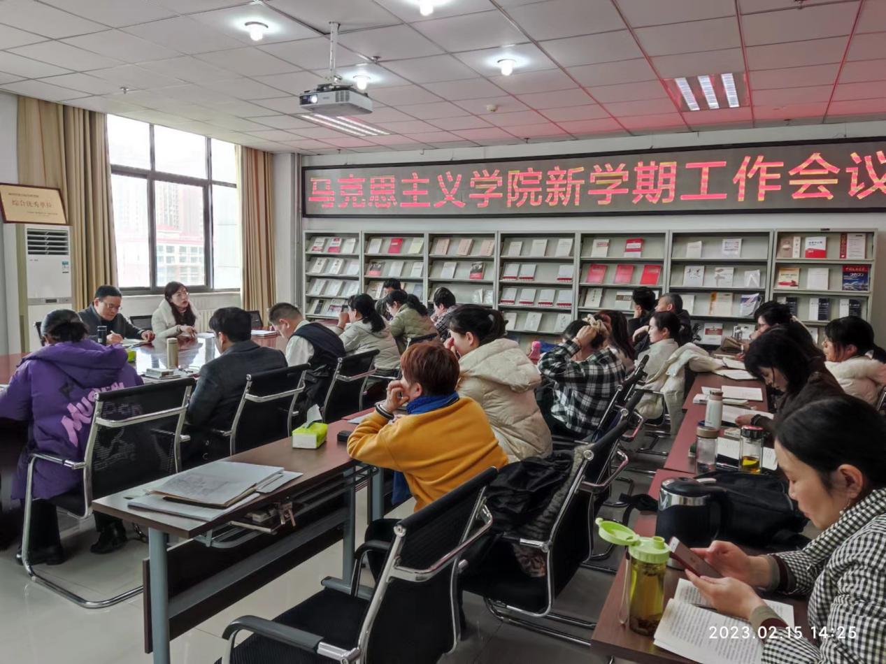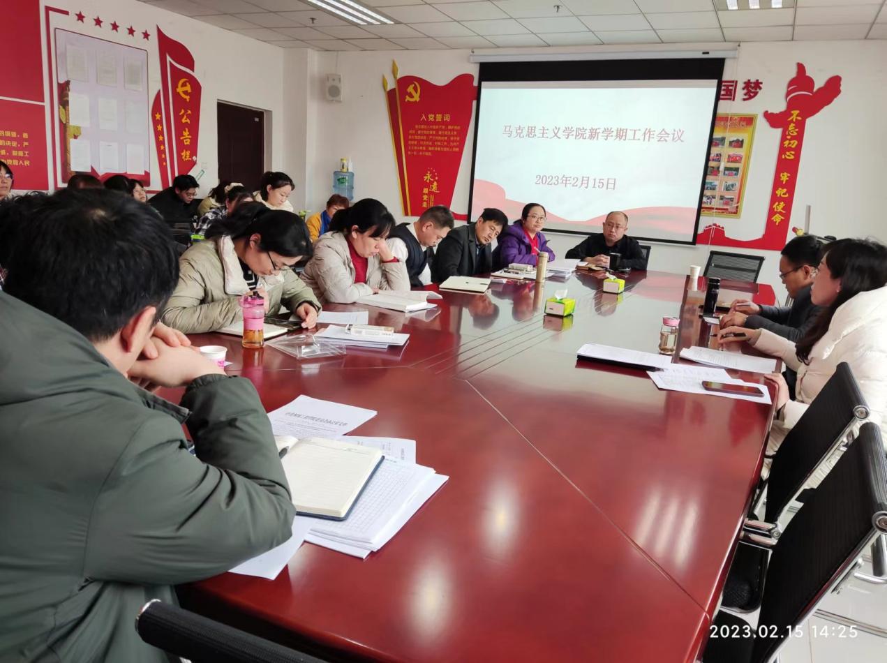 2月15日下午,马克思主义学院在综合楼7楼会议室召开新学期工作会议。马院院长主持,学院党政领导和全体教师参加。