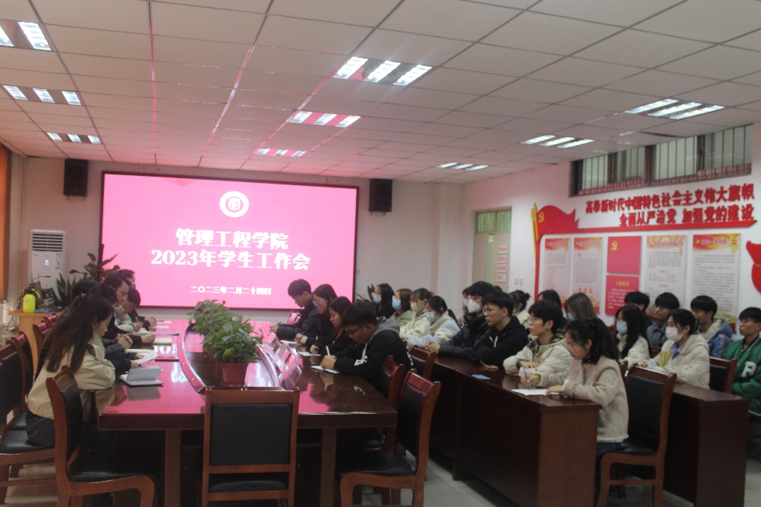 2月24日,管理工程学院召开2023新学期学生工作会,部署新学期工作任务。学院党委书记张立军、院长黄德金、全体辅导员老师和学生干部代表参加此次会议。会议由学院党委副书记曹冰主持。