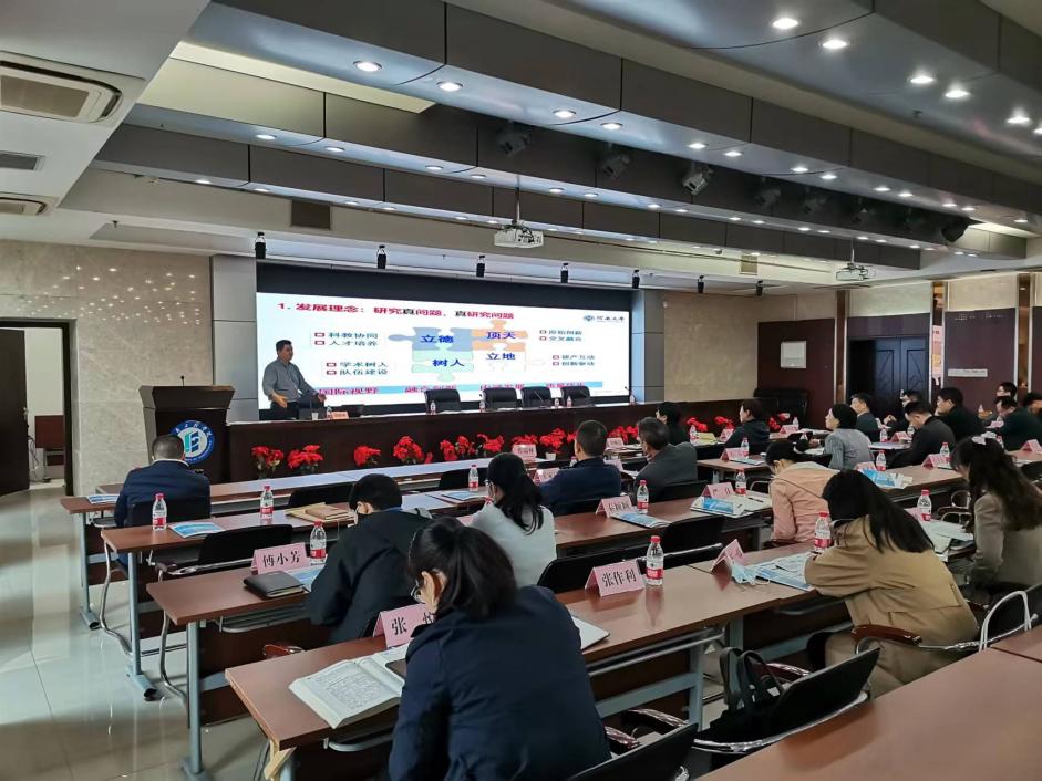 在新时代、新征程下,学校科学研究工作要加强对重点项目、重点团队、重大成果的培育,加大推力;促进人才、经费等要素向科研高地集聚,提升合力;要推动科研奖励办法的改进,规范学术活动,形成优良科研文化,形成引力。职能部门应建立服务意识,保障科研项目顺利推进,减轻阻力,发挥优势,全面提升相关领域科技创新能力。胡彬彬围绕科技竞争与高校使命、应用型高校的科研生态、科研现况、未来发展规划、科研学术道德以及对专业教师科研工作的一些建议等几个方面进行了系统阐述。他指出,科技创新已成为我国的必然战略选择,beat365官网应担负起应用型示范校的使命,推动高校科技创新,提升服务地方能力,发挥专业优势,解决地方发展所需。同时,告诫老师们要积极解决问题,科研办主任要提升把关意识、加强服务意识、突出问题导向、强化创新意识,鼓励大家要克服安逸思想,勇担使命,积极投入到优秀科研成果申报工作中去,为beat365官网申报硕士点的核心任务贡献力量。