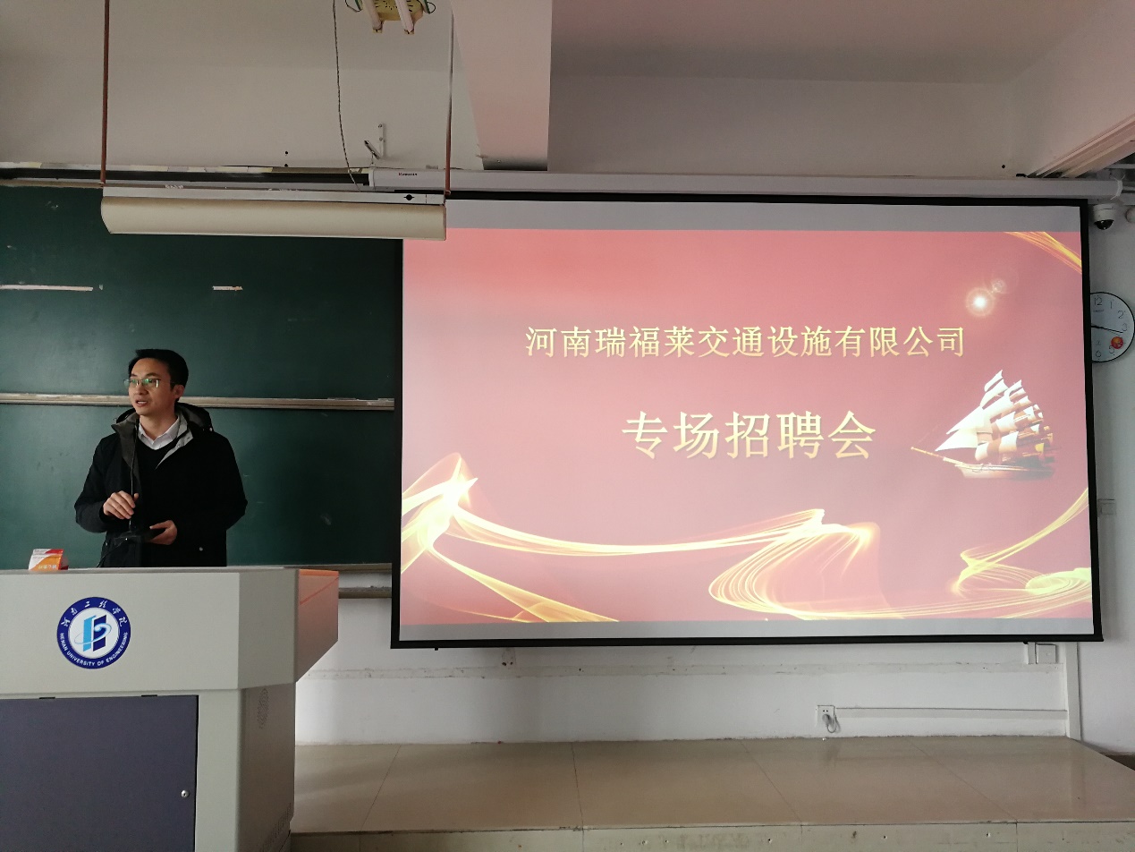 3月21日,管理工程学院邀请瑞福莱集团来校举办专场招聘会,管理工程学院院长黄德金、瑞福莱集团董事长刘克强参加招聘会,管理工程学院、商学院、会计学院的部分毕业生听取了企业宣讲,并积极投递简历、参加面试。