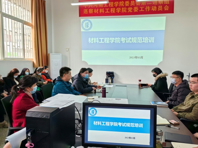 为扎实做好试卷命评阅、成绩评定及存档工作,切实加强教学质量管理,全力保障教学秩序平稳有序进行,3月23日,材料工程学院在桐柏路校区召开考试规范培训会。本次会议由学院副院长杨柳主持,全体教师参加。