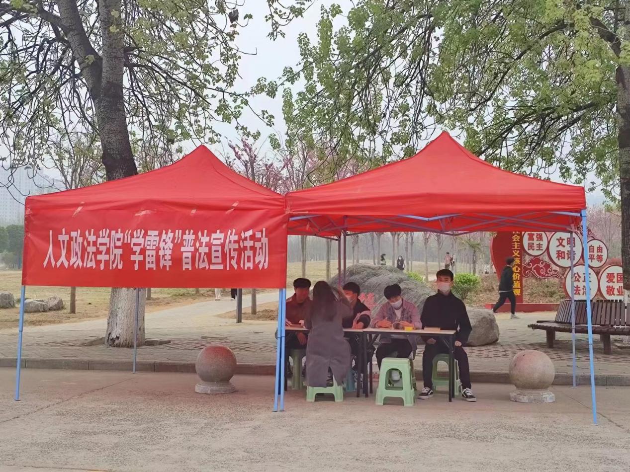 为积极弘扬雷锋精神、宣传“奉献、友爱、互助、进步”的志愿精神,3月23日,人文政法学院在南校区开展了“学雷锋”普法宣传活动。