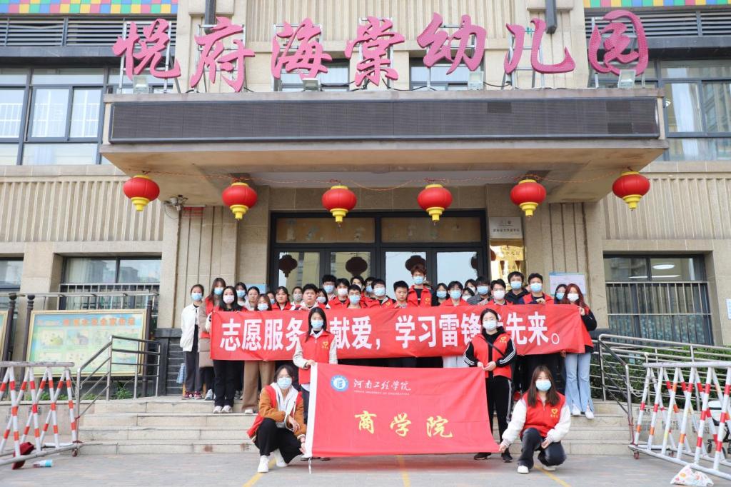 为深入开展雷锋月活动,坚持贴近实际,贴近生活,走近人民群众,传递雷锋精神,践行志愿服务精神。3月24日下午,商学院分团委书记金晓光带领志愿者前往悦府海棠幼儿园开展以“志愿服务奉献爱、学习雷锋我先行”为主题的志愿活动。参加此次活动的还有龙湖镇荆垌社区主任胡照勇。