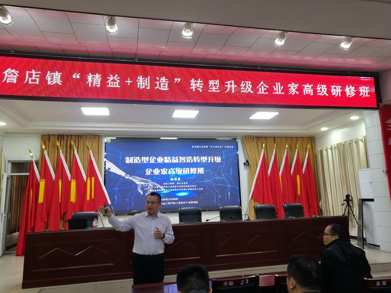 据悉,管理工程学院联合詹店镇人民政府举办“万人助万企专项活动——制造业精益智造转型升级企业家高级研修班”,主要针对规上企业,拟进行五期研讨,分别从企业精益变革高效实施路径、产品质量提升改善办法、生产效率提升改善方法、设备效率提升方法、智能工厂规划设计与实现等方面进行研讨,助力企业转型升级。