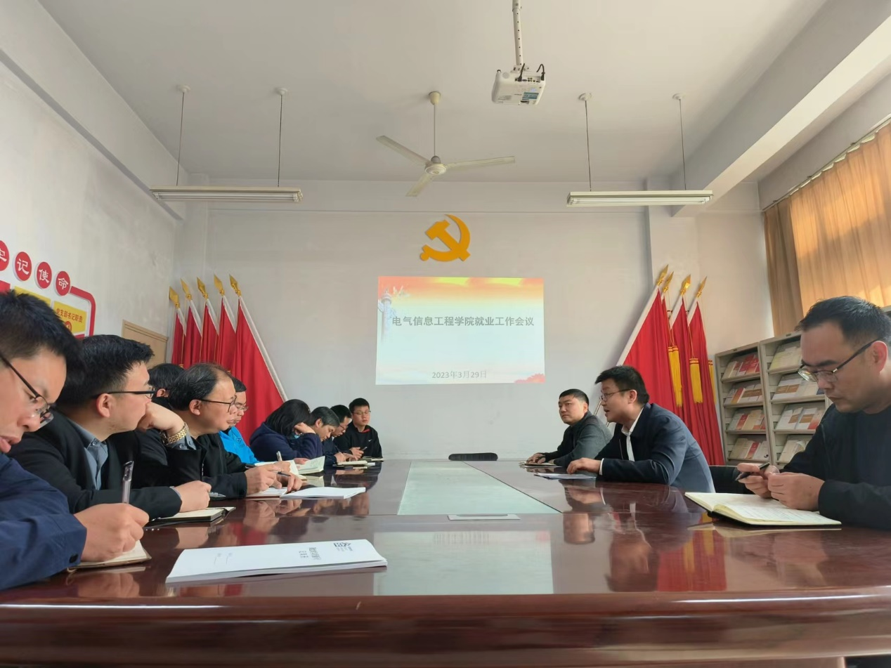 为切实保障大学生就业工作的贯彻落实,3月29日下午,电气信息工程学院召开2023届毕业生就业工作会议。学院领导班子成员,各系各教研室主要负责人、全体辅导员、班主任参加了会议。会议由学院党委书记张帆主持。