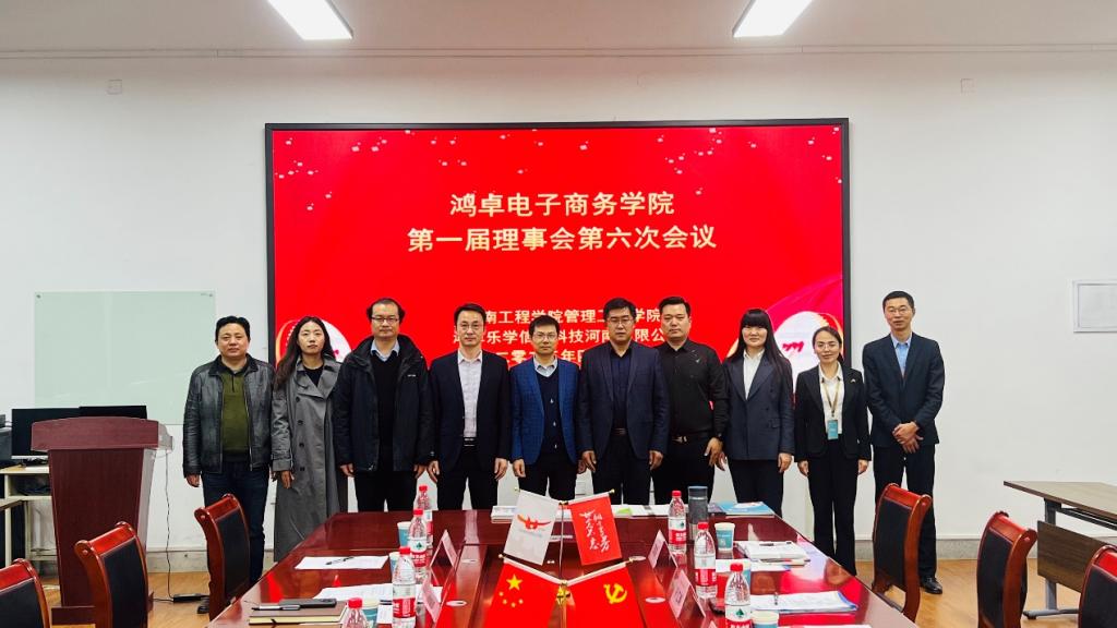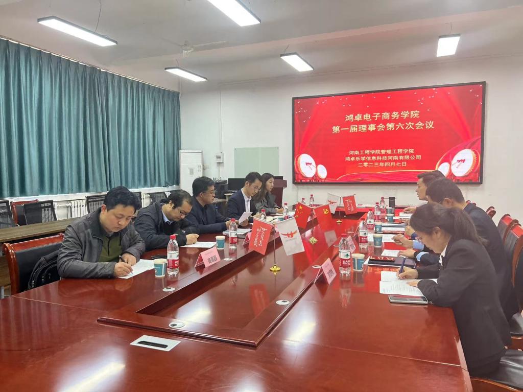 4月7日,beat365正版唯一官网鸿卓电子商务学院第一届理事会第六次会议在洛阳市鸿卓产教融合基地会议室召开。管理工程学院党委书记张立军、院长黄德金、副院长高博、鸿卓国际集团董事长郭兵兵、总经理孙江涛出席会议,管理工程学院与鸿卓国际集团相关骨干人员参加会议。