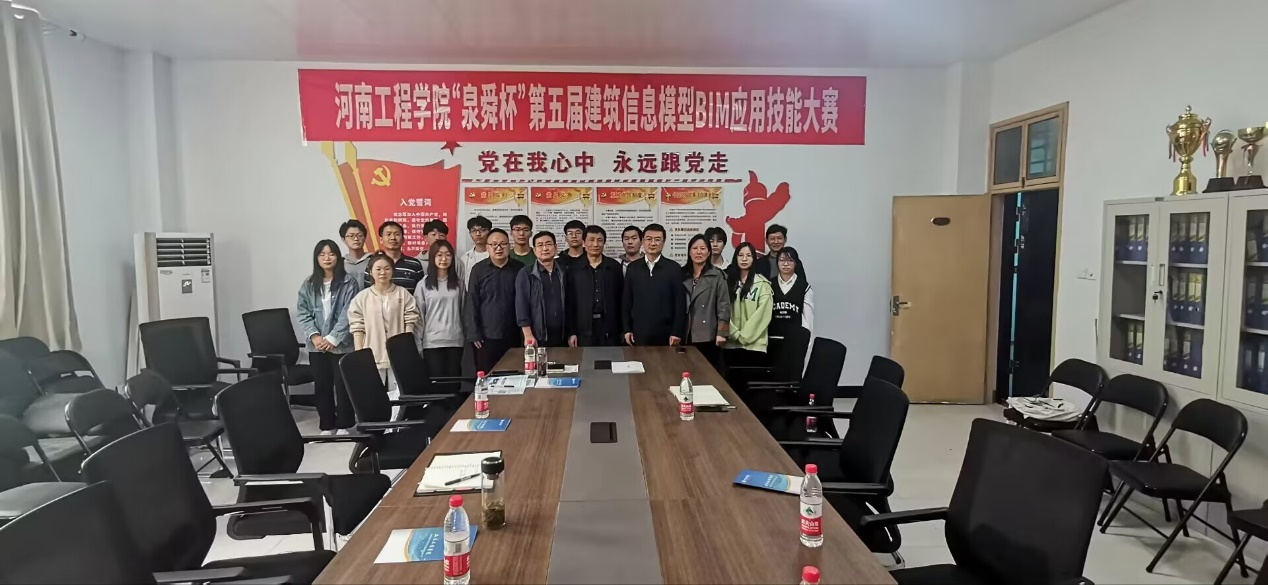 2023年4月12日下午,由土木工程学院主办、河南泉舜工程有限公司协办的“泉舜杯”第五届建筑信息模型BIM应用技能大赛启动仪式在土木工程学院党员之家进行,土木工程学院党委书记卢朝东,副院长徐云博、张仙平,以及河南泉舜工程有限公司总工程师李永胜等参加了启动仪式。