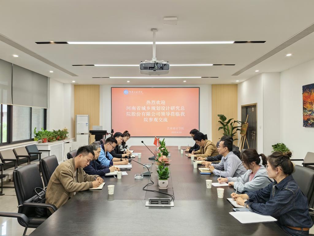 近日,河南省城乡规划设计总院股份有限公司城市体检评估中心副主任李晨阳、总经济师胡长改、城市更新研究中心副主任韩冰,带领有关部门负责人一行到我院开展校企合作座谈交流。学院党委书记刘超、副院长吴剑锋、朱明及相关部门、设计团队负责人参加交流活动。会议由刘超主持。