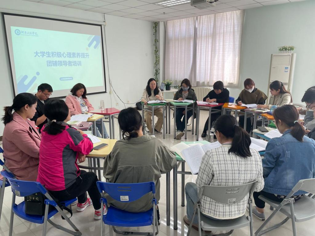 近日,为进一步巩固beat365官网心理育人工作成效,强化学生心理素质拓展工作技能,心理健康教育中心组织开展为期两周的“大学生积极心理素养提升团辅带领者”培训,首轮培训于4月19日下午启动。本次培训由心理健康教育中心教研室主任李雪英老师主讲,心理健康教育中心全体成员、各学院心理专员、辅导员、学生助理共20余人参与此次活动。