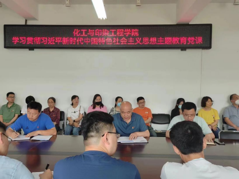为推动学习贯彻习近平新时代中国特色社会主义思想主题教育走深走实,5月17日下午,化工与印染工程学院党委书记郑汝东、院长王非在办公楼506为全体教工党员和学生代表上党课。