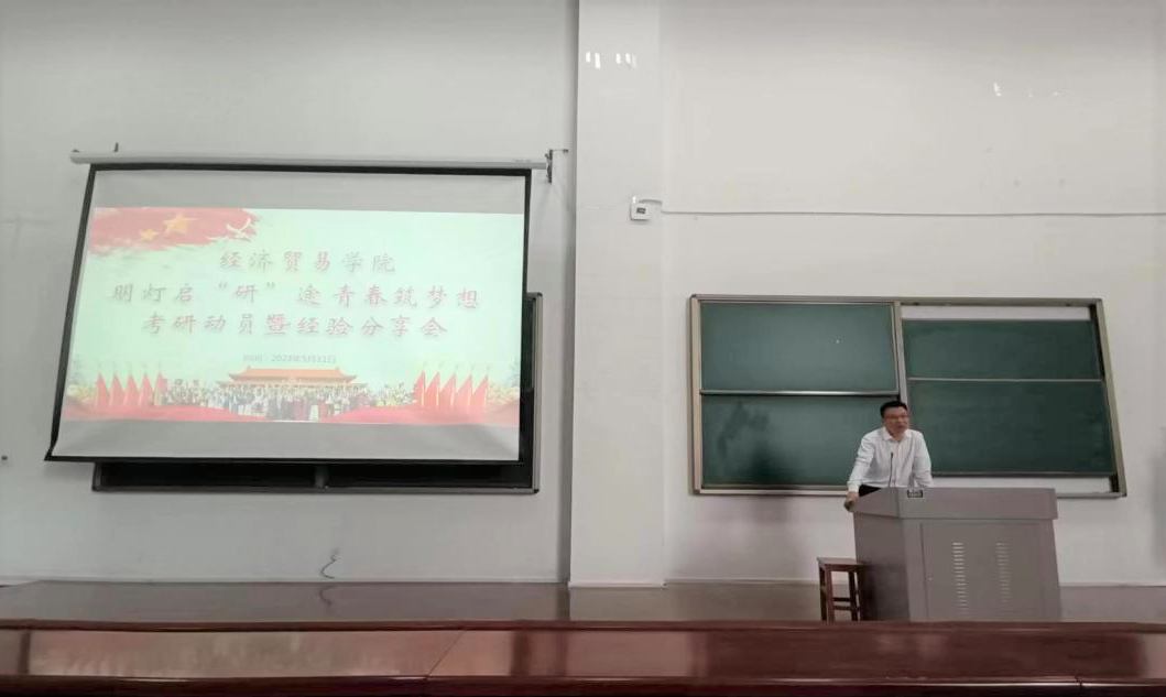 为加强学院学风建设,切实帮助考研学生解决问题,5月31日下午,经济贸易学院于9A227-228举办以“明灯启研途,青春筑梦想”为主题的考研动员暨经验分享会。学院院长张建华、副院长安乾、启航负责老师伏恩,2018级、2019级考研毕业生代表及学院2020级、2021级本科生,2022级专升本共200余人参加分享会。