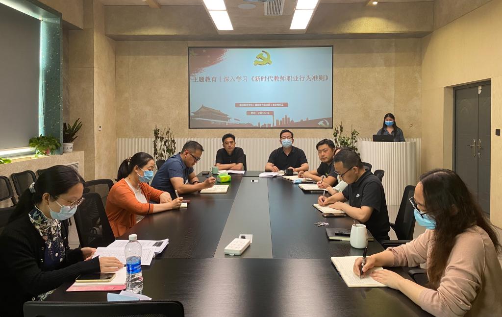 5月31日下午,主题教育学习期间,为进一步全面提升教师思想政治素质和职业道德水平,我院在8号教学楼8307会议室组织开展关于《新时代教师职业行为准则》的学习及测试。学院全体教职工参加会议。学院党委书记刘汝举带头领学。