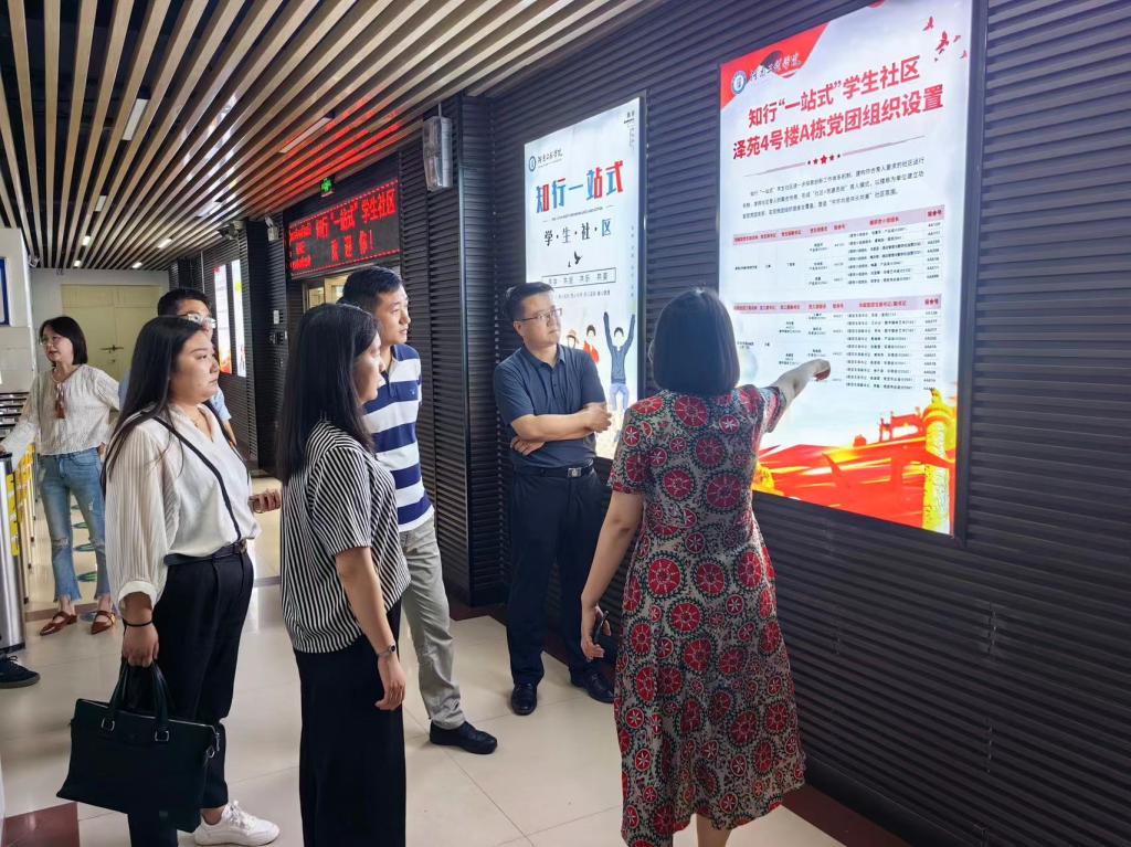 6月28日下午,郑州西亚斯学院校团委书记白萌、书院制研究工作专班主任刘东伟一行在beat365官网团委书记悦国宁的陪同下,到知行“一站式”学生社区进行交流参观。知行“一站式”学生社区主任方月、副主任苏湉,及部分育人导师陪同参会。
