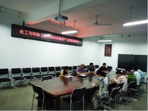 7月25日下午,化工与印染工程学院在工美楼506室举行纺织服装产业链“融链”行动研讨。学院党委书记郑汝东、院长王非、党委副书记李萌、副院长曹机良和轻化工程专业骨干教师参与,会议由王非主持。