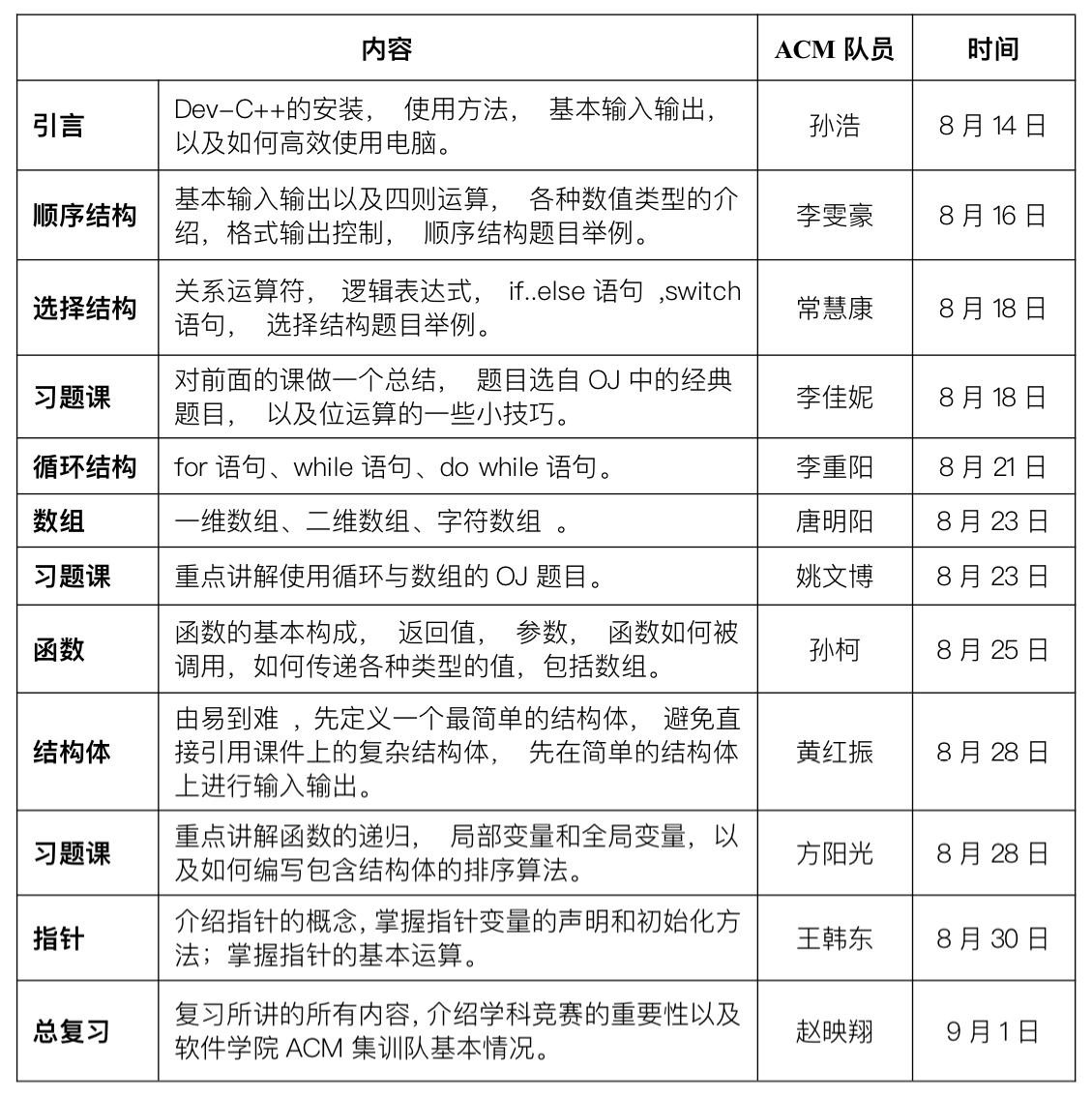 由ACM集训队中12名学生组成的培训小组通过B站直播方式对C语言的基本语法、分支结构、循环结构、函数、数组等程序设计基础进行讲解,利用QQ群进行实时答疑,充分利用学院OJ系统进行编程训练,检验学习效果。