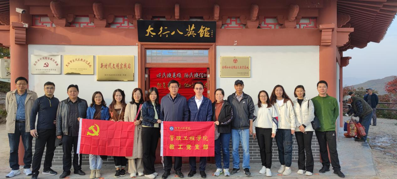 为弘扬革命精神,推动党的二十大精神落地生根,10月21日,管理工程学院教工党支部党员和青年教师代表赴焦作市红色教育基地——太行八英馆开展“感悟红色情怀,追寻红色印记”主题党日活动。