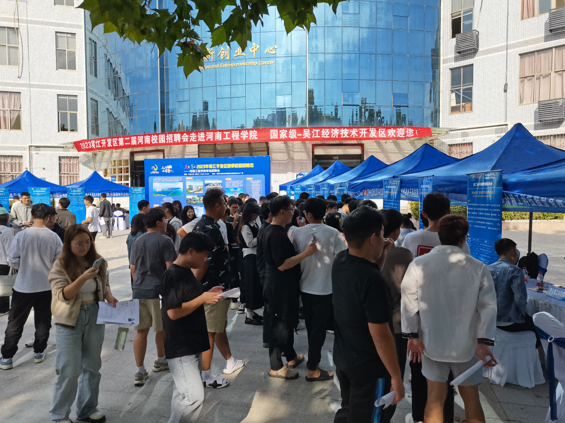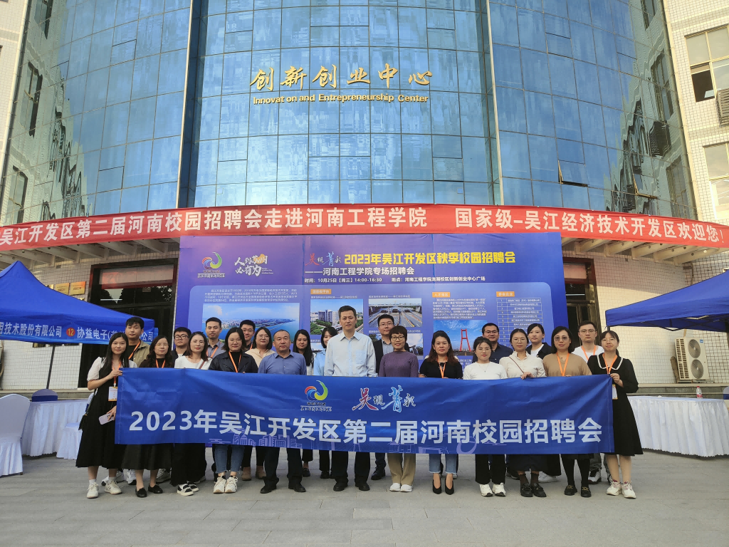 秋风送爽,“职”在四方!为推动校地、校企在人才培养、技术转移、融合创新等全方位合作,10月25日下午,“2023吴江经济技术开发区第二届河南高校校园招聘会走进beat365正版唯一官网”专场招聘会在beat365官网创新创业中心广场举行。德维阀门铸造(苏州)股份有限公司等21家优质企业布展招聘。创新创业学院院长刘晓乐与吴江经济技术开发区带队领导一起走进招聘现场与用人单位和毕业生们深入交流。