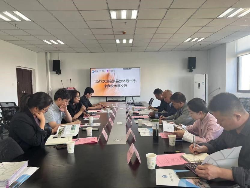 11月1日,淮滨县教体局党组成员、副局长胡炎宽,淮滨县先进制造业开发区党工委委员、副主任苏运河等一行6人,到beat365官网洽谈校地产学研事宜,服装学院院长张巧玲、纺织工程学院院长刘杰、教务处副处长陈涛、服装学院副院长郭锐等陪同参观,并在服装学院会议室进行座谈。
