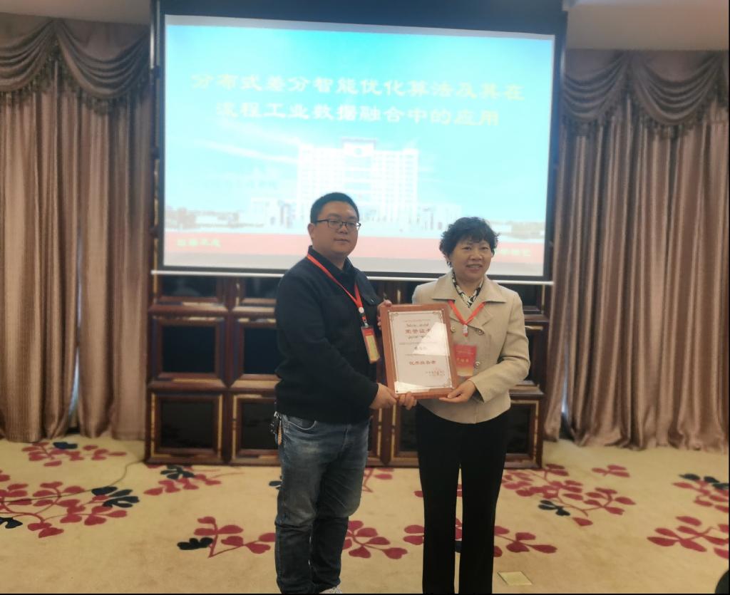 25日下午,我院参会教师代表张佰伦博士做了题为“分布式差分智能优化算法及其在流程工业数据融合中的应用”的专题报告。主要结合流程工业数据的特点,展示了多种智能优化算法在过程控制工业实践中的应用,总结了分布式差分算法在工业数据融合解构的有效性实践,报告获得与会人员的一致好评,被大会授予“优秀报告者”称号,并颁发了证书。