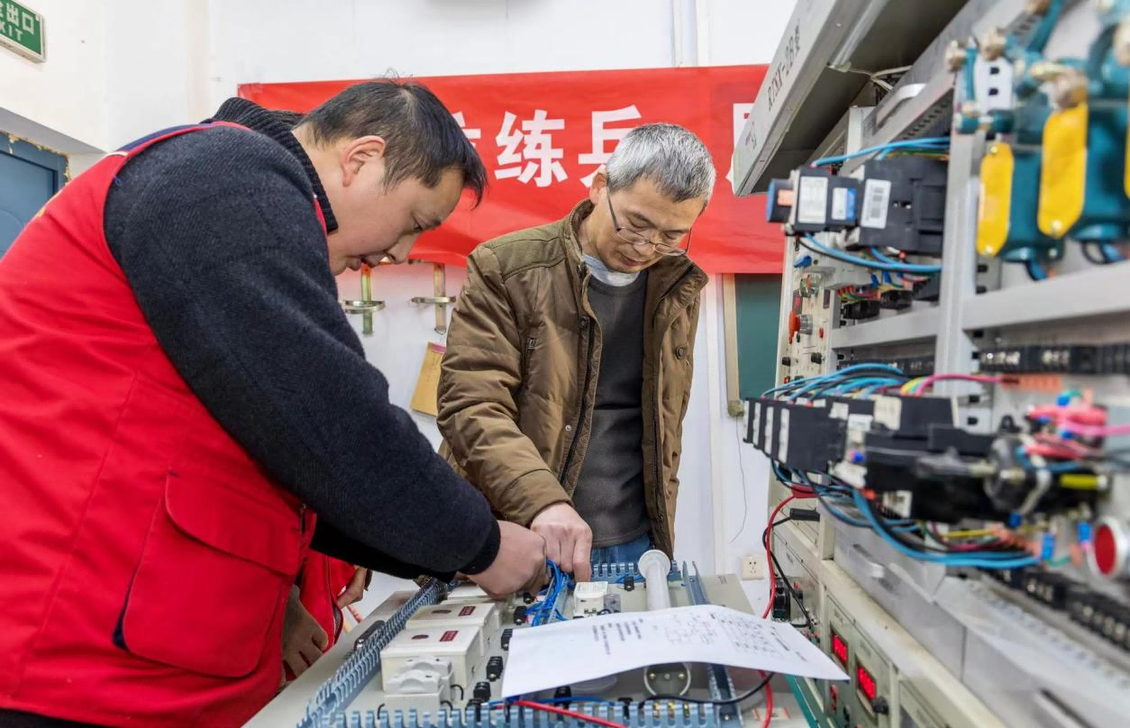 12月1日上午,在西校区3号实验楼C406教室举办实操技能大比武,电工师傅们根据培训中学习的理论知识,埋头在操作台上认真地进行单开双控控制,日光灯排线接线操作。在接线中遇到镇流器损坏、启动器不通电等各种问题,通过排查,最快地找到问题所在并及时解决,经过近两个小时的激烈角逐,最终评选出8名技术能手。