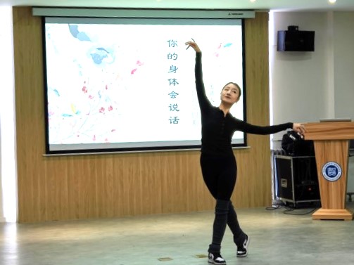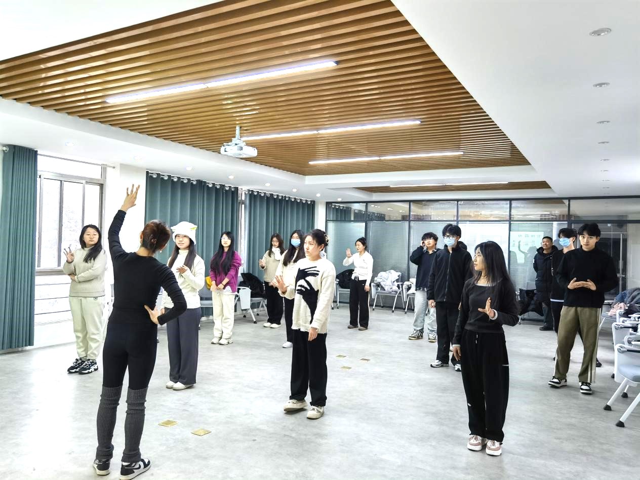 手之舞之,足之蹈之。课堂上,杨老师详细讲述了中国舞蹈的历史发展,结合肢体舞蹈生动传递出中国古典舞“拧”“倾”“圆”“曲”的内涵特征及“提、沉、含、腆、仰、移、冲、靠”的基本动作,不仅让在场学生了解了中国古典舞这一艺术形式,更深入领会了其历史文化底蕴和内涵特征。随后,学生们在杨老师的指导下起舞翩翩,共同完成了原创中国古典舞《雪落下的声音》,通过舞蹈更好地了解和感受到中华传统文化的魅力、赓续我们民族精神,同样也是学生认识美、爱好美和创造美的能力提升。