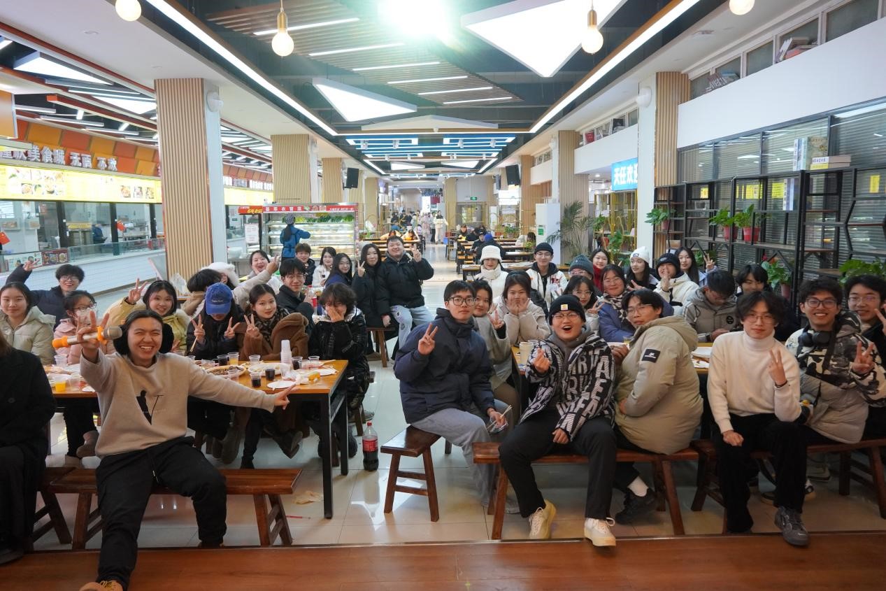 活动期间,学生们热情高涨,和面、擀面皮、包饺子有条不紊,配合默契。老师们也同学生积极参与到包饺子的环节,洋溢着幸福、融洽的气氛。在冬至团建活动中,无论老师还是学生在和谐温馨的氛围中,尽情地一展歌喉。在场欢声笑语,乐不知疲,师生也相继送上了冬至祝福,展望未来。最后,大家看到一份份饺子送上餐桌,笑容满盈,品味着自己劳动成果,心中充满了幸福感与成就感。师生有说有笑,畅所欲言,共享着冬至团建的温馨时光。