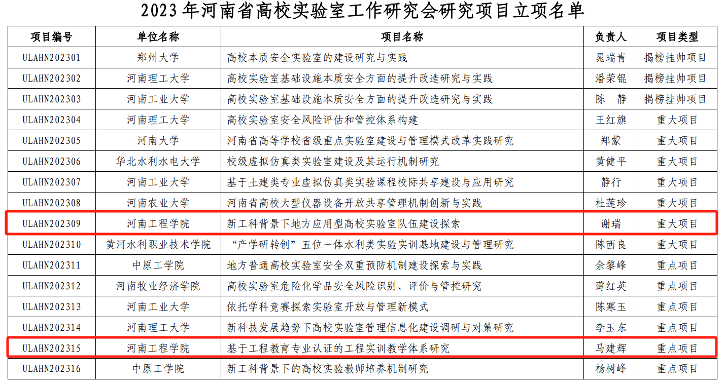 近日,河南省高校实验室工作研究会公布了“2023年河南省高校实验室工作研究会研究项目”立项名单,beat365官网喜获重大项目一项、重点项目一项。