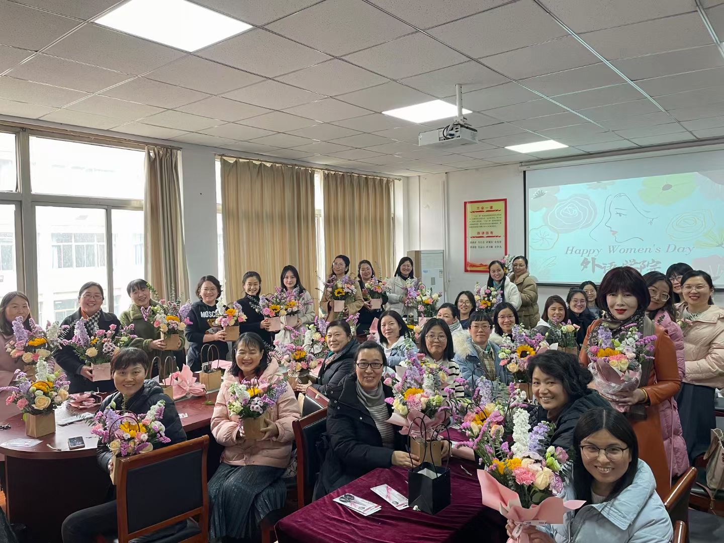 春风如你,熠熠芳华。在第114个“三八”国际妇女节来临之际,为进一步丰富我院女教职工精神文化生活,3月6日下午,外语学院分工会在学院会议室开展“三八节”插花沙龙活动。插花活动还专门邀请了校统战部部长黄玉、发展规划处处长王晓俊、学报副主任张豫红一起参与,大家欢聚一堂,共同享受这场花艺盛宴。