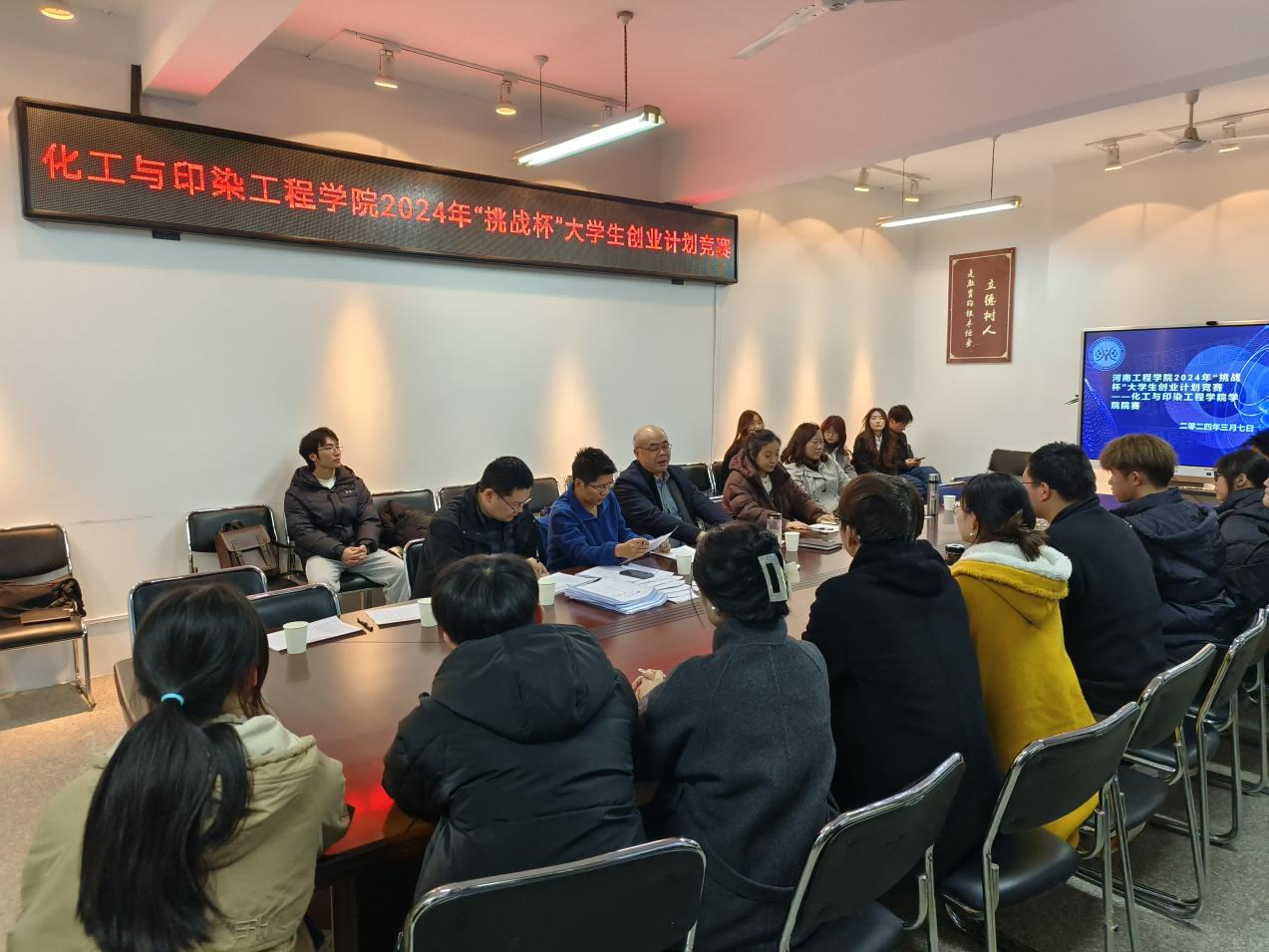 为贯彻落实国家双创工作部署,进一步引导和激励大学生增强创新创业意识,增强学生团队协作能力和自我展示能力,展现新时代大学生的创新风采。3月7日,化工与印染工程学院在工美楼506室举办2024年“挑战杯”大学生创业计划竞赛院内选拔赛,学院党委书记郑汝东、副书记李萌、副院长李延勋、学工办主任游利锋、科研办主任高晓强参加评审活动。