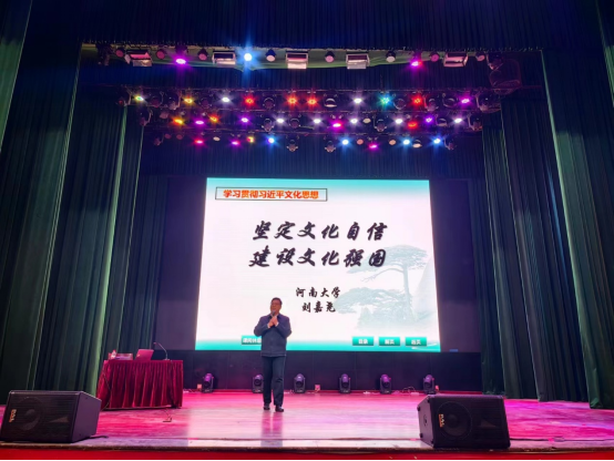 刘嘉尧教授以《学习贯彻习近平文化思想——坚定文化自信,建设文化强国》为题作首场报告。他以习近平文化思想的提出和发展历程入题,围绕“为什么要建设社会主义文化强国”和“如何建设社会主义文化强国”两个问题进行展开。凭借深厚的学术功底和对文化传承的独特理解,深入剖析了我国文化自信在新时代背景下的重要意义,尤其是对工科学生如何在科技与人文之间找到平衡点,树立坚定的文化自信进行了鞭辟入里的阐述。